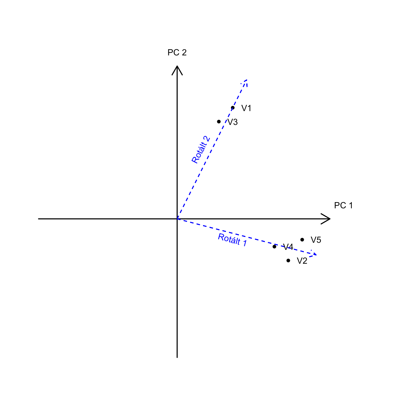 A rotáció (forgatás) célja, hogy egyszerűbb, értelmezhető struktúrát kapjunk. Leegyszerűsítve, onnan tudjuk, hogy jó rotációs módszert alkalmaztunk, hogy egyszerű struktúrát kaptunk. Az egyszerű struktúra azt jelenti, hogy a változók 1 közeli értékkel töltenek az egyik főkomponensre és 0 közeli értékkel az összes többire.
