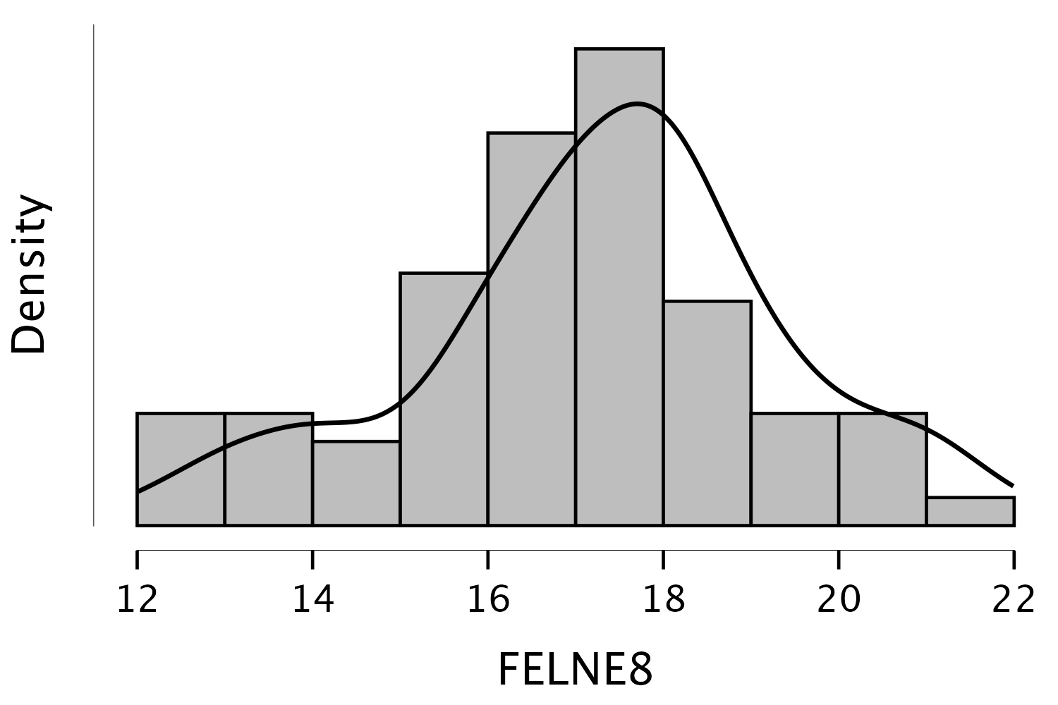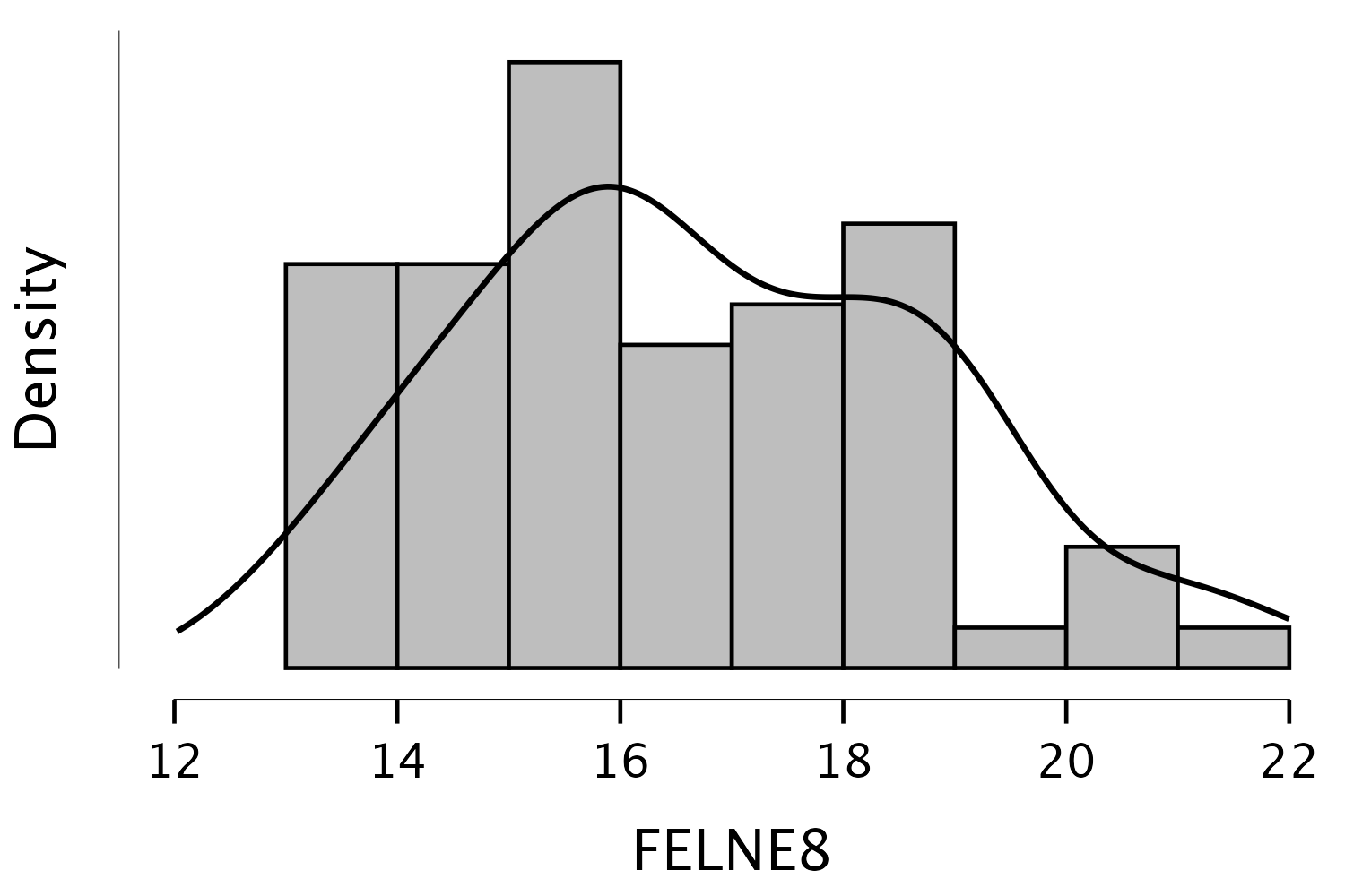 lawstat::symmetry.test(data$FELNE8)A funkció automatikusan a Miao-Gel-Gastwrith-féle szimmetriavizsgálatot (Miao és mtsai., 2006) fogja futtatni.