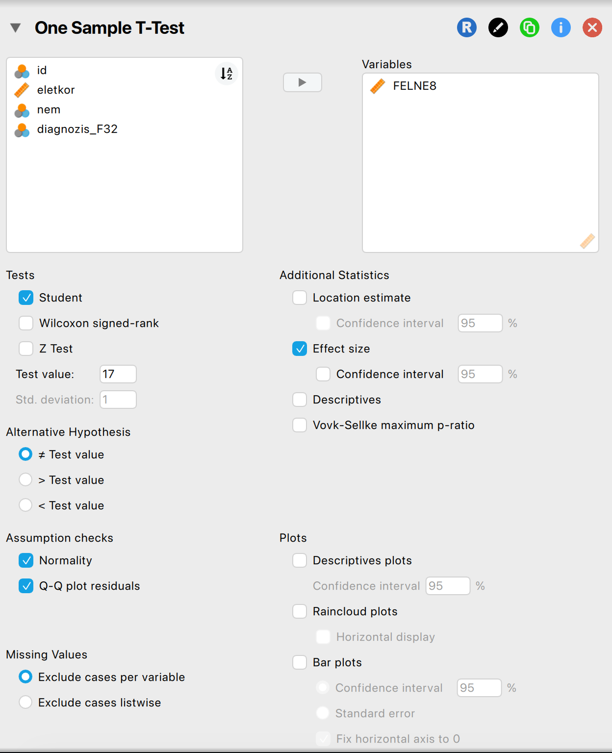 Ezt a JASP-ban ellenőrizzük: