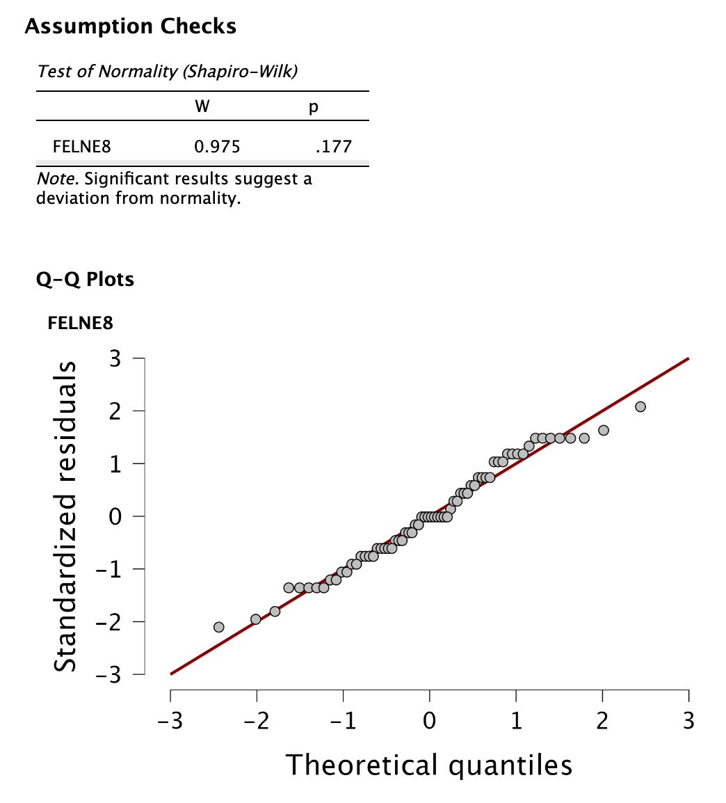 A Shapiro–Wilk-féle normalitásvizsgálatot az „Assumption checks” szekció „Normality” kipipálásával futtathatjuk.