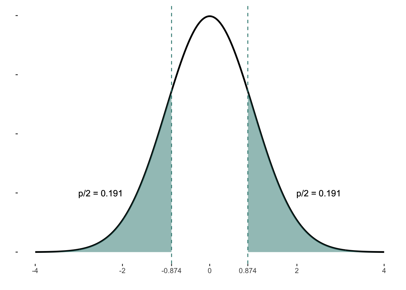 Kétoldalú próba esetén: \(2 \times P(V ≤ z)\)