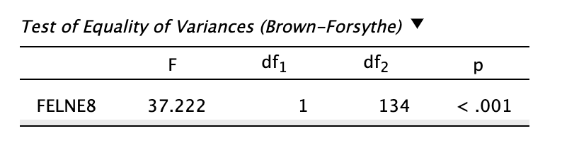 A Welch-féle t-próbához nem szükséges feltétel a szóráshomogenitás. Így ezt a próbát alkalmazzuk, amikor a Levene- vagy Brown-Forsythe-próbánk szignifikáns (p < 0,05) eredményt ad.