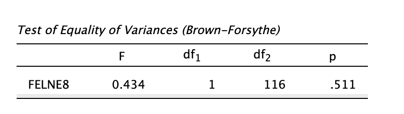 A feltétel ellenőrzését a Levene-próbával vagy a Brown-Forsythe-próbával végezzük JASP-ban.