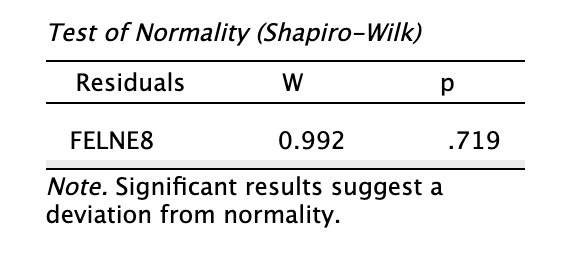 Láthatjuk, hogy a Shapiro-Wilk próba eredménye nem szignifikáns (p > 0,05), tehát a változó csoportonként követi a normál eloszlást.