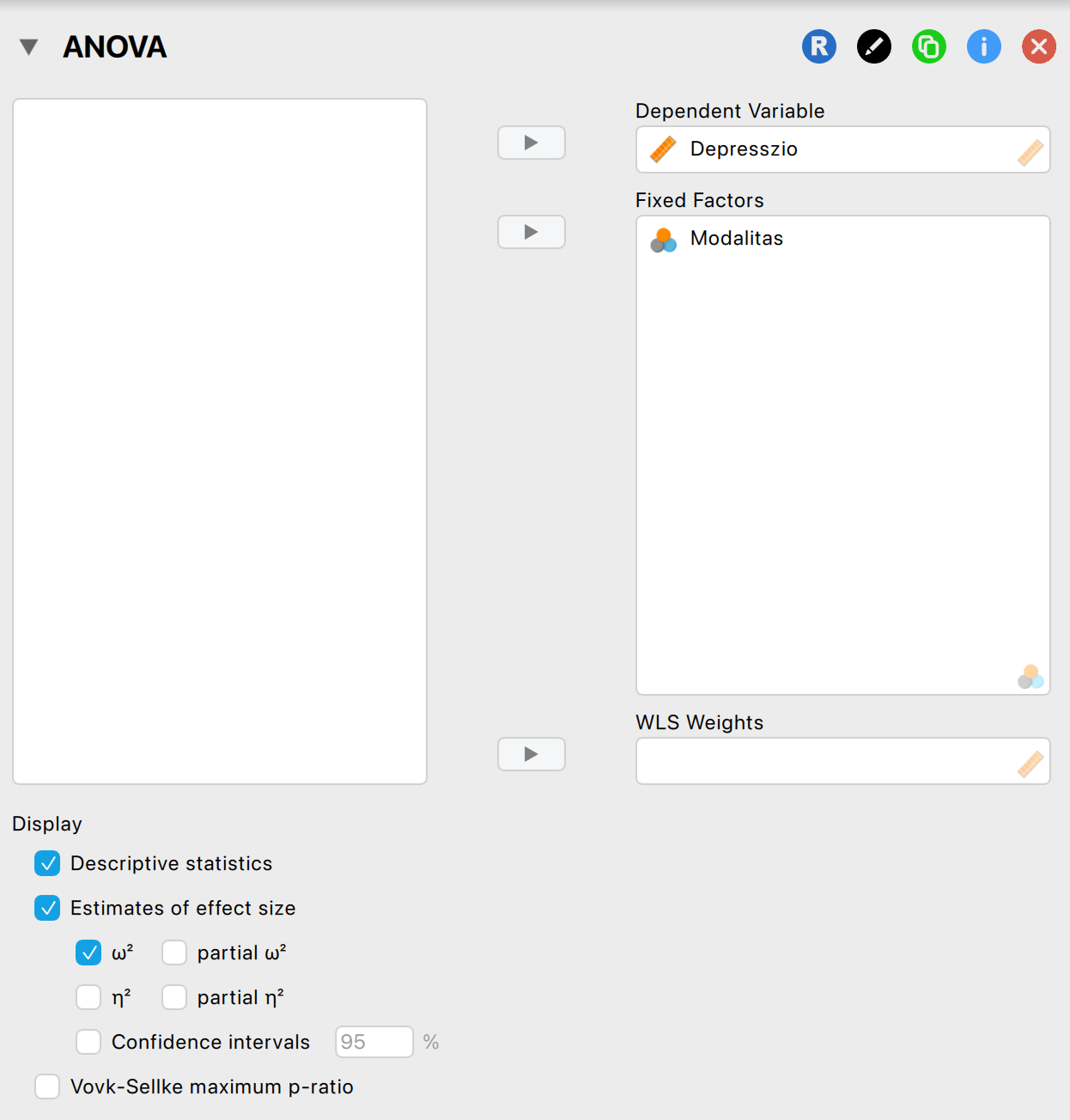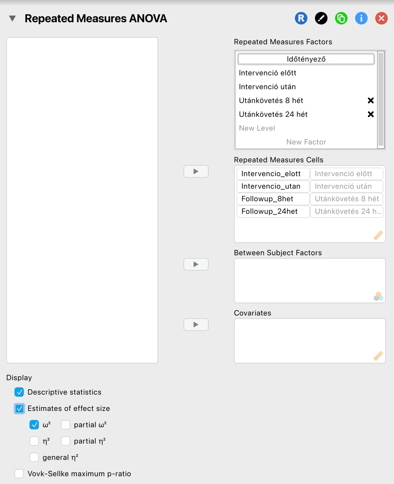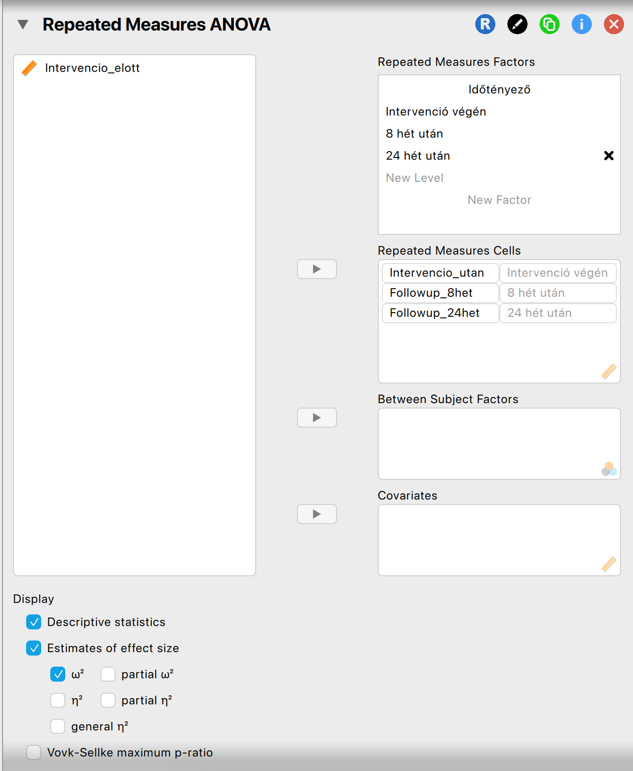- Az Effect size rovatot feltétlenül kipipáljuk, ha nem lenne alapból kipipálva