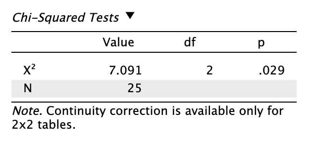 A kapcsolat vizsgálatára khí-négyzet próbát végeztünk JASP-ban, melynek eredménye: