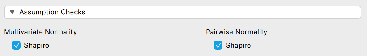 - Conditioned: a korrelálandó változók többdimenziós normalitása a kontrollváltozó nélkül. Ha csak két fő változót korreláltatunk, akkor eredménye egybeesik majd a kétdimenziós normalitásvizsgálat eredményével